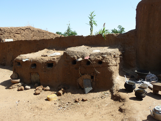 fabrication de briques à base d'argile et de paille, séchées au soleil et constitutives de tous les bâtiments du village |